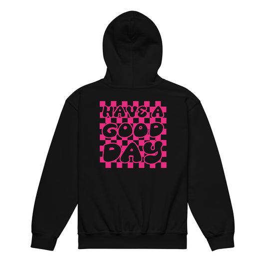 Smiley Face Unisex Youth heavy blend hoodie, Hot Pink Text