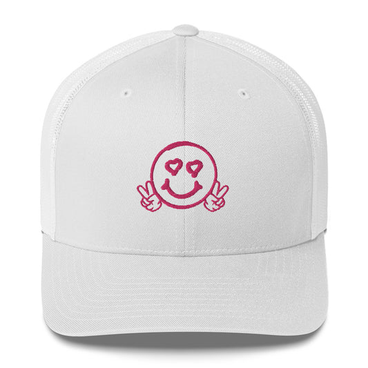 Women's Smiley Face / Happy Face T-Shirt. Hot Pink Text with "Have A Good Day" on Back