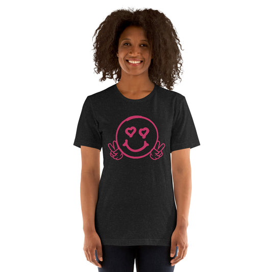 Women's Smiley Face/ Happy Face T-Shirt. Hot Pink Text with "Have A Good Day" on back