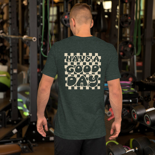 Men's Smiley Face t-shirt with "Have A Good Day" on back